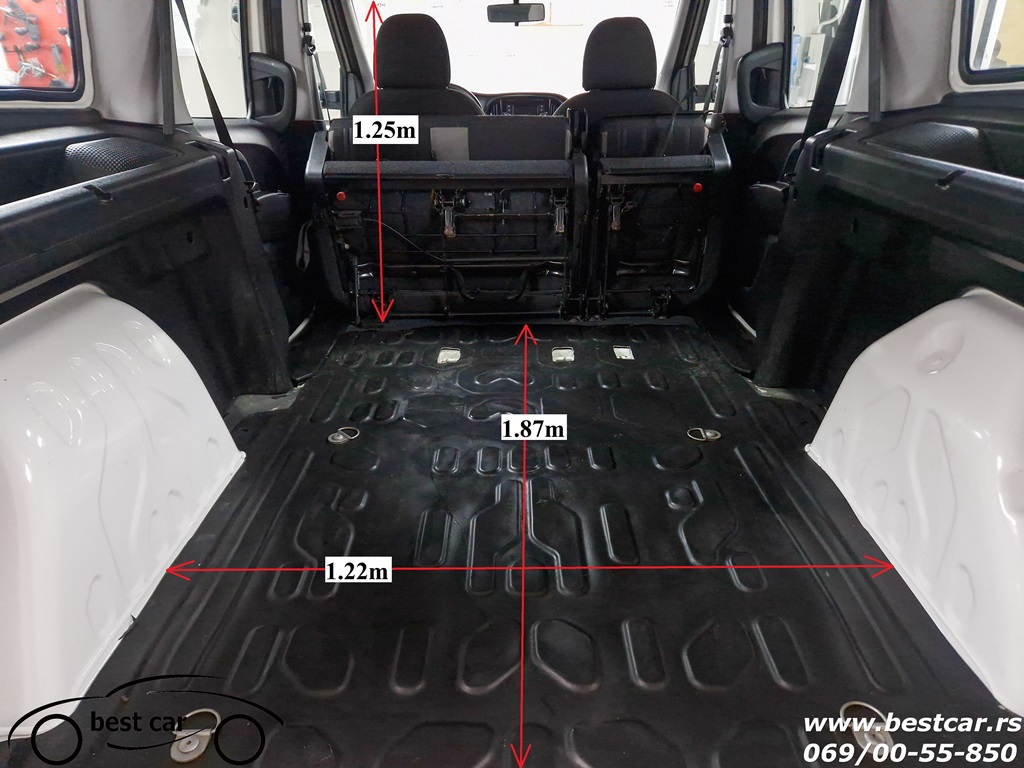 ### DIMENZIJE TOVARNOG PROSTORA : DUŽINA : 1.30m A SA OBORENIM SEDIŠTIMA 1.87 m, ŠIRINA 1.22 m , VISINA 1.25 m